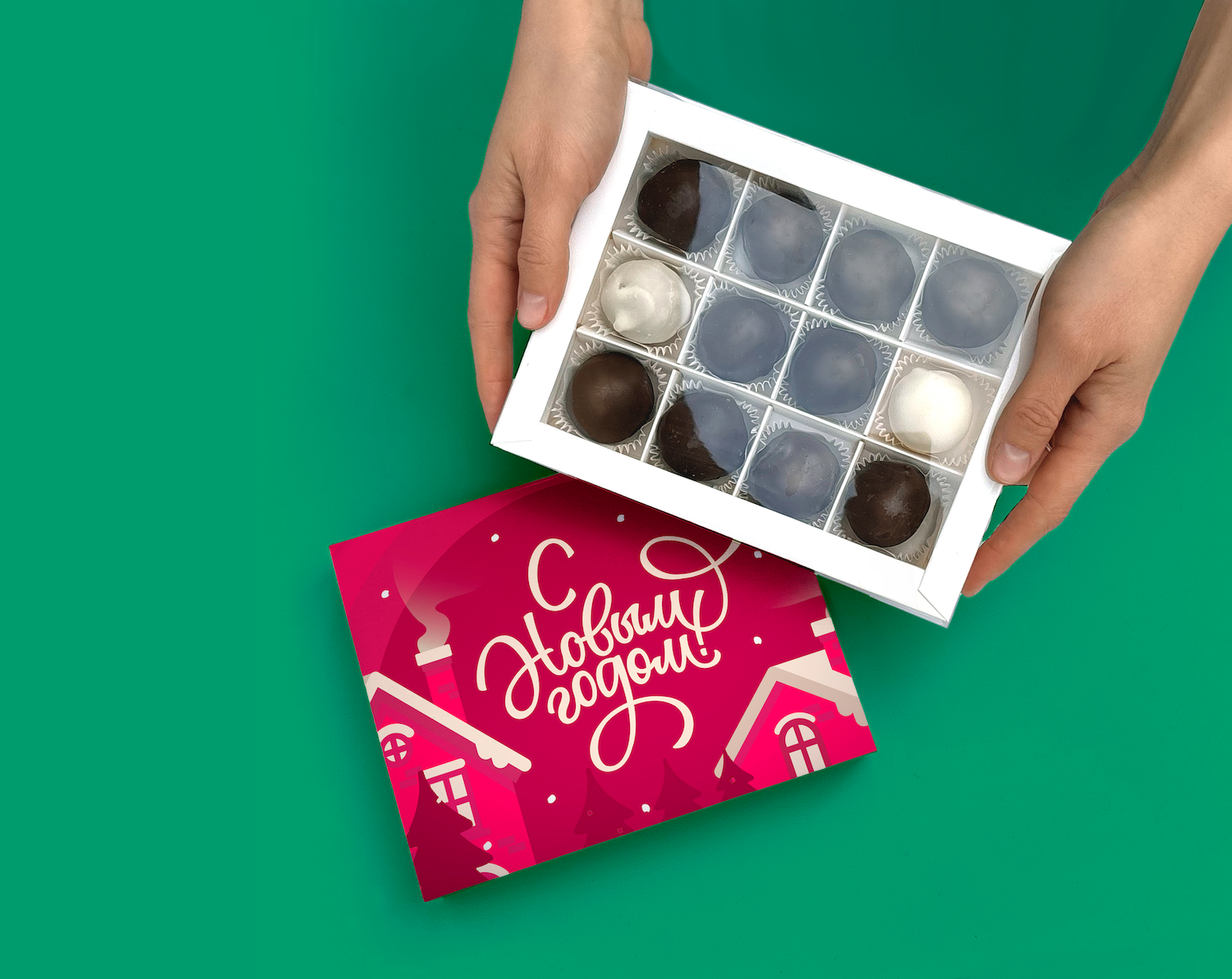 Преимущество брендированных конфет заключается в индивидуальном оформлении упаковки. Использование корпоративных цветов, нанесение логотипа и новогодних пожеланий на обёртку делают подарок запоминающимся. Подарочные коробки обычно оснащаются внутренними вкладышами из плотного картона, чтобы каждая конфета оставалась на своём месте, а общий вид набора сохранялся при транспортировке. Для новогодней тематики используют изображения ёлок, снежинок или стилизованных мандаринов, которые ассоциируются с зимними праздниками и создают особое настроение.